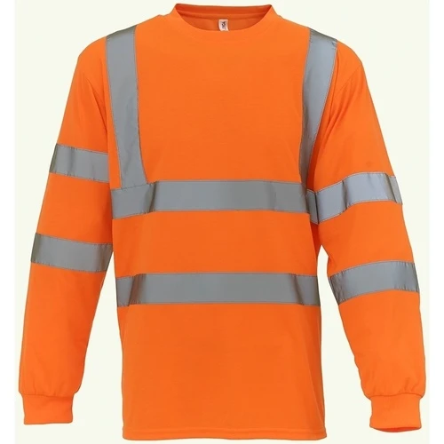 Material: 100% polyester. Conforms to EN ISO 20471: 2013 class 3. RIS-3279-TOM (orange only). Soft ribbed knit collar and cuffs. Taped neck. Two reflective bands around the body, sleeves and one over each shoulder. Twin needle hem. Chest size to fit: (S): 34-36, (M): 38-40, (L): 42-44, (XL): 44-46, (XXL): 46/48, (3XL): 50-52.